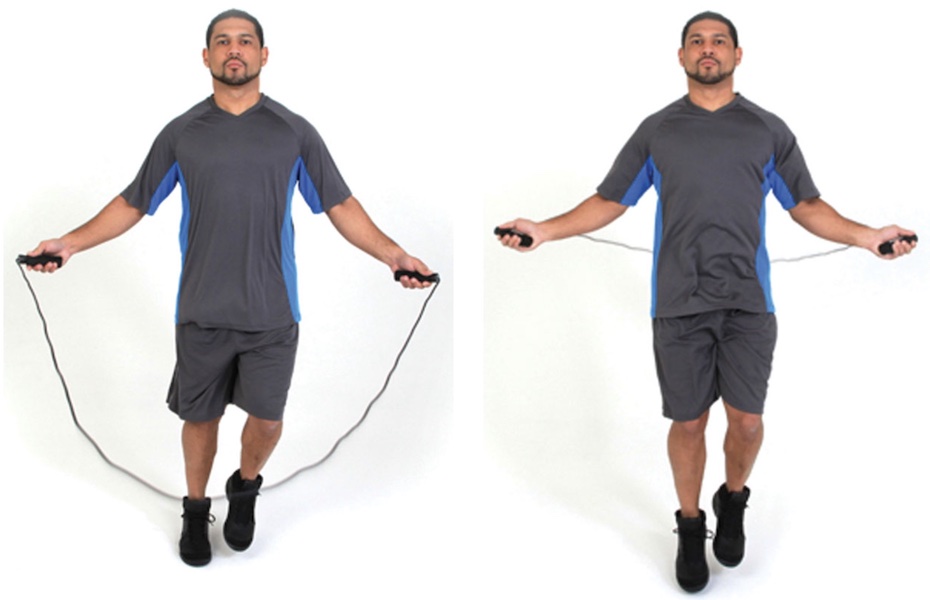 VeryWellFit: "Using a jump rope gives you a simple way to condition the muscles used for plyometrics as well as get you comfortable with the coordination required for more powerful plyometric bounding. This simple move gets you in shape for more intensity down the road." [ID: jump_rope]