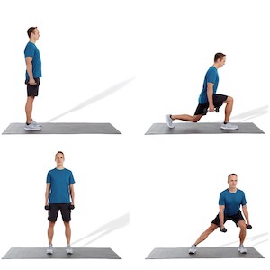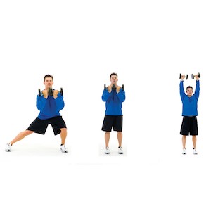 Multi-planar lunge to two-arm dumbbell press [totalbody05] | totalbody05.htm |