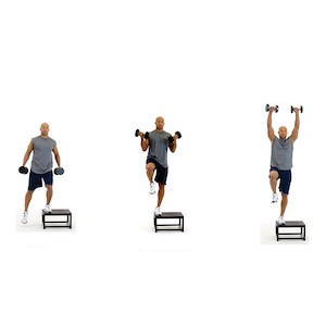 Multi-planar step-Up, balance, curl to overhead press [totalbody02] | totalbody02.htm |