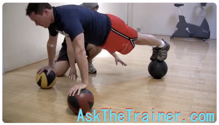 Here are five FUN, intense variations of push-ups with medicine balls, www.youtube.com/watch?v=O8Mf4m3_4TA