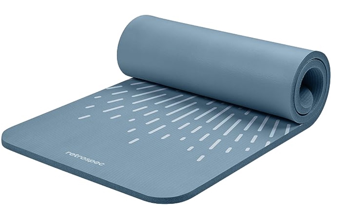 For a thicker yoga mat (on a harder floor), I like the Retrospec Solana Yoga Mat yoga mat. [#yoga_mat_thicker]